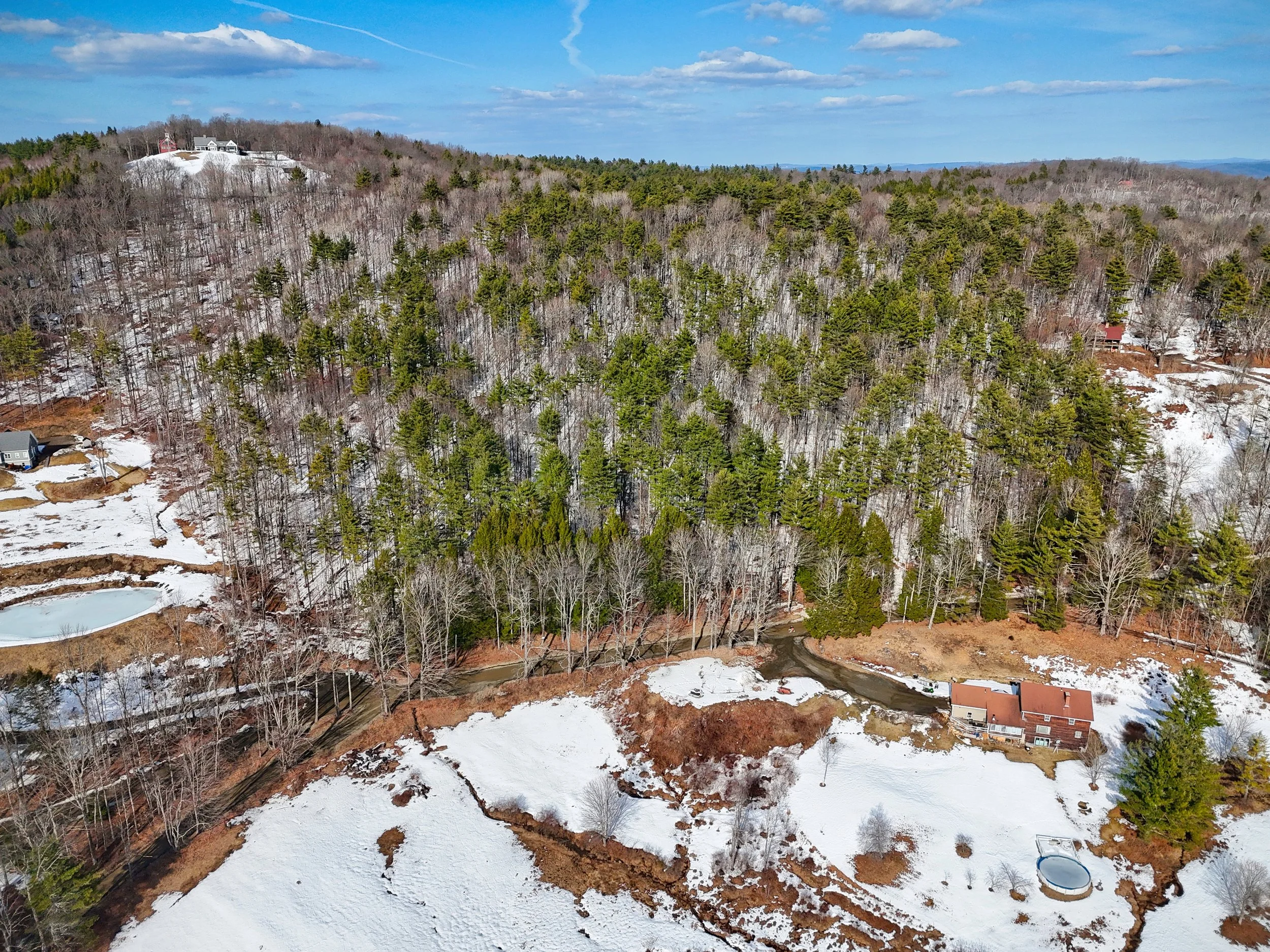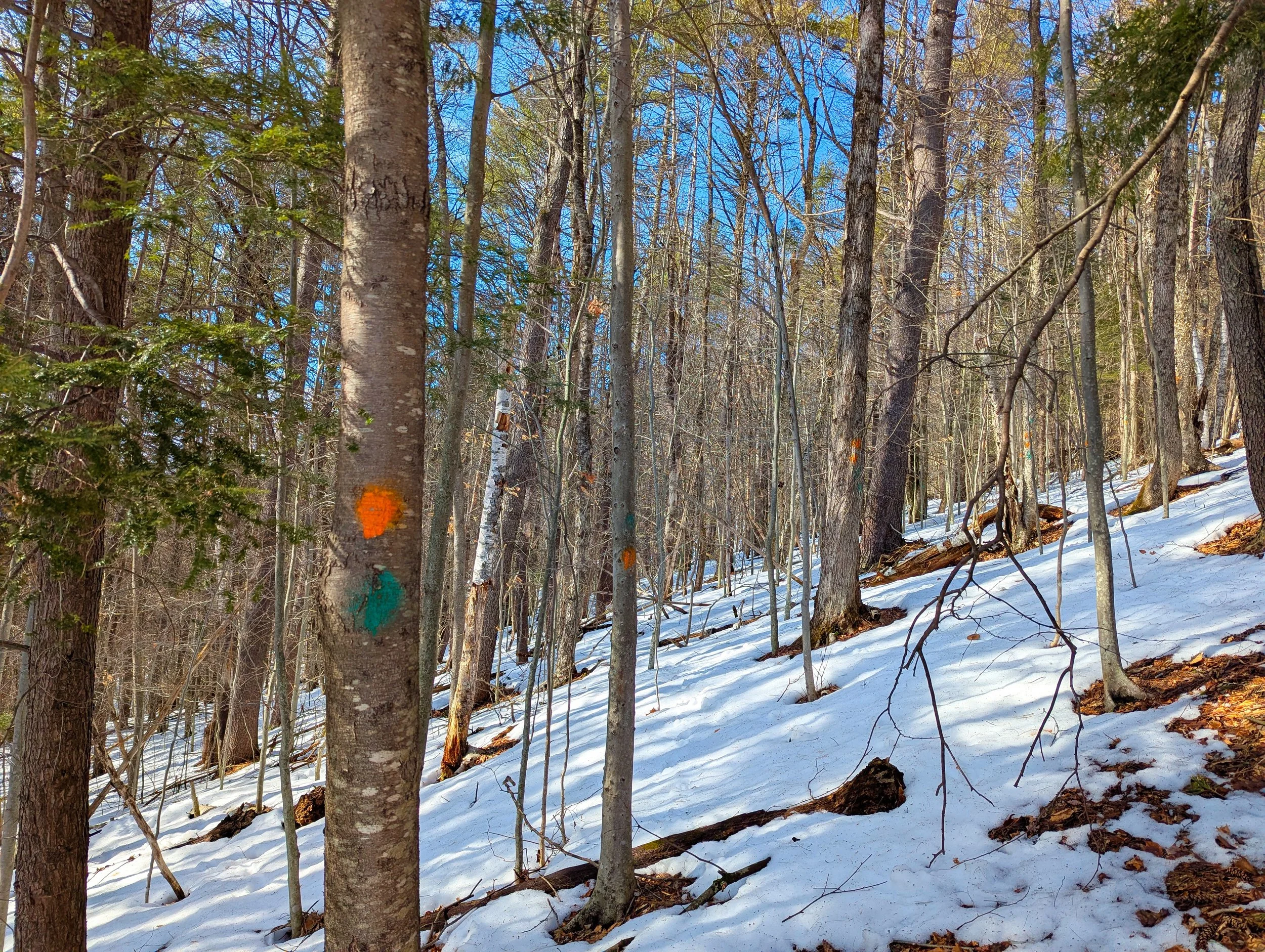 A network of hiking trails is blazed across the property, but the easiest way to view the high ground is an old logging road starting from the end of the driveway for a house at 1680 Carpenter Hill Road.