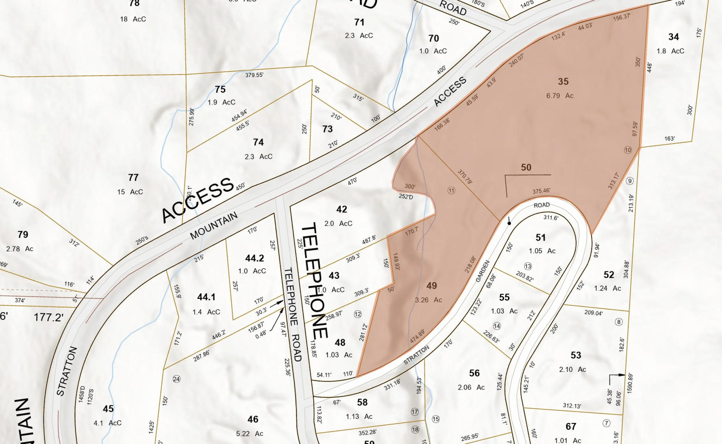 Access: 1,067 feet of frontage on Garden Loop Road. 826 feet of frontage on Stratton Mountain Access Road.