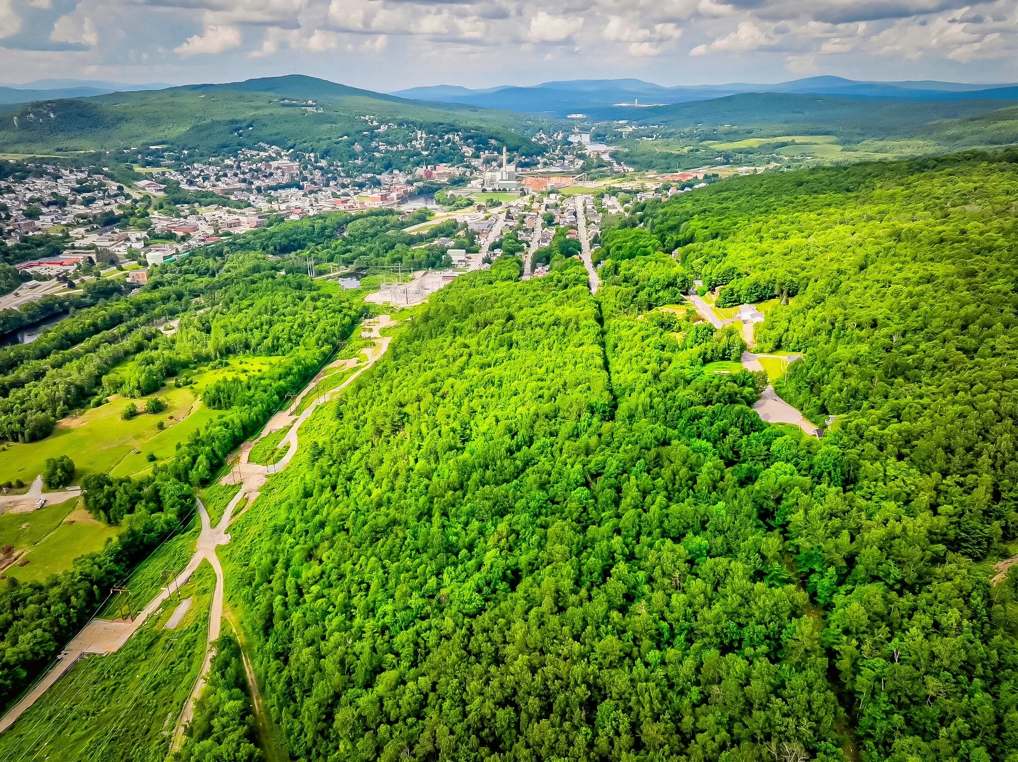 Beautiful lot with a scenic view at end of a cul-de-sac on Hillsboro Street in Berlin. The topography is flat near the road, and then slopes down to the west, exposing a view over the Androscoggin River straight to Jericho Mountain and the Mount Forest cliffs.