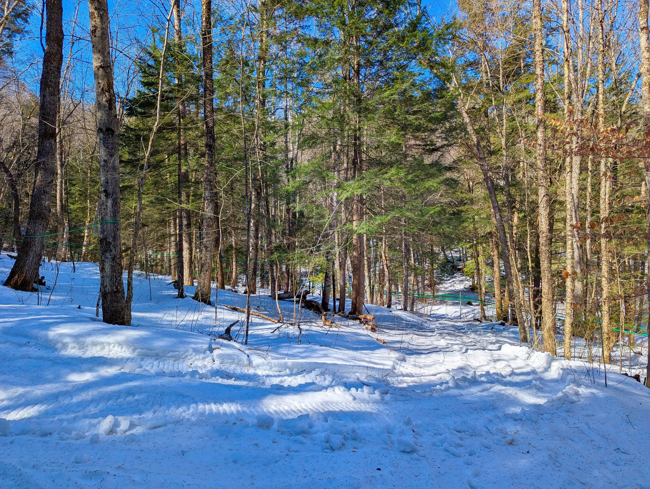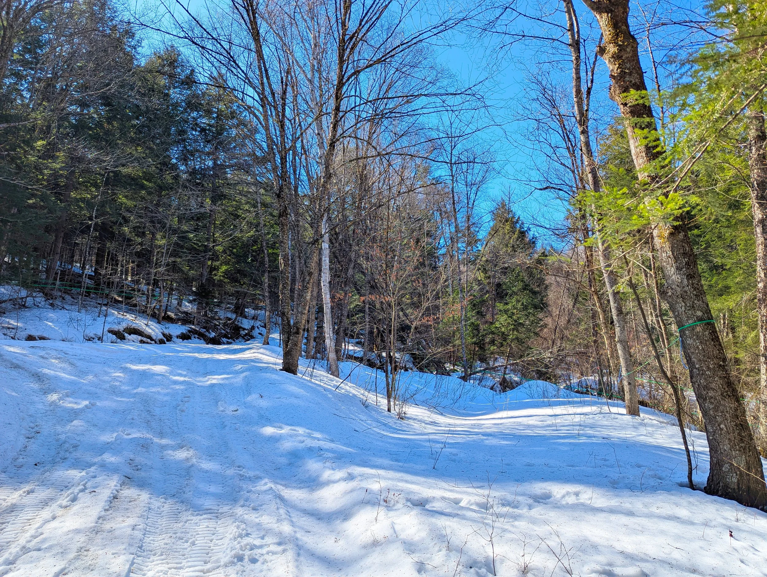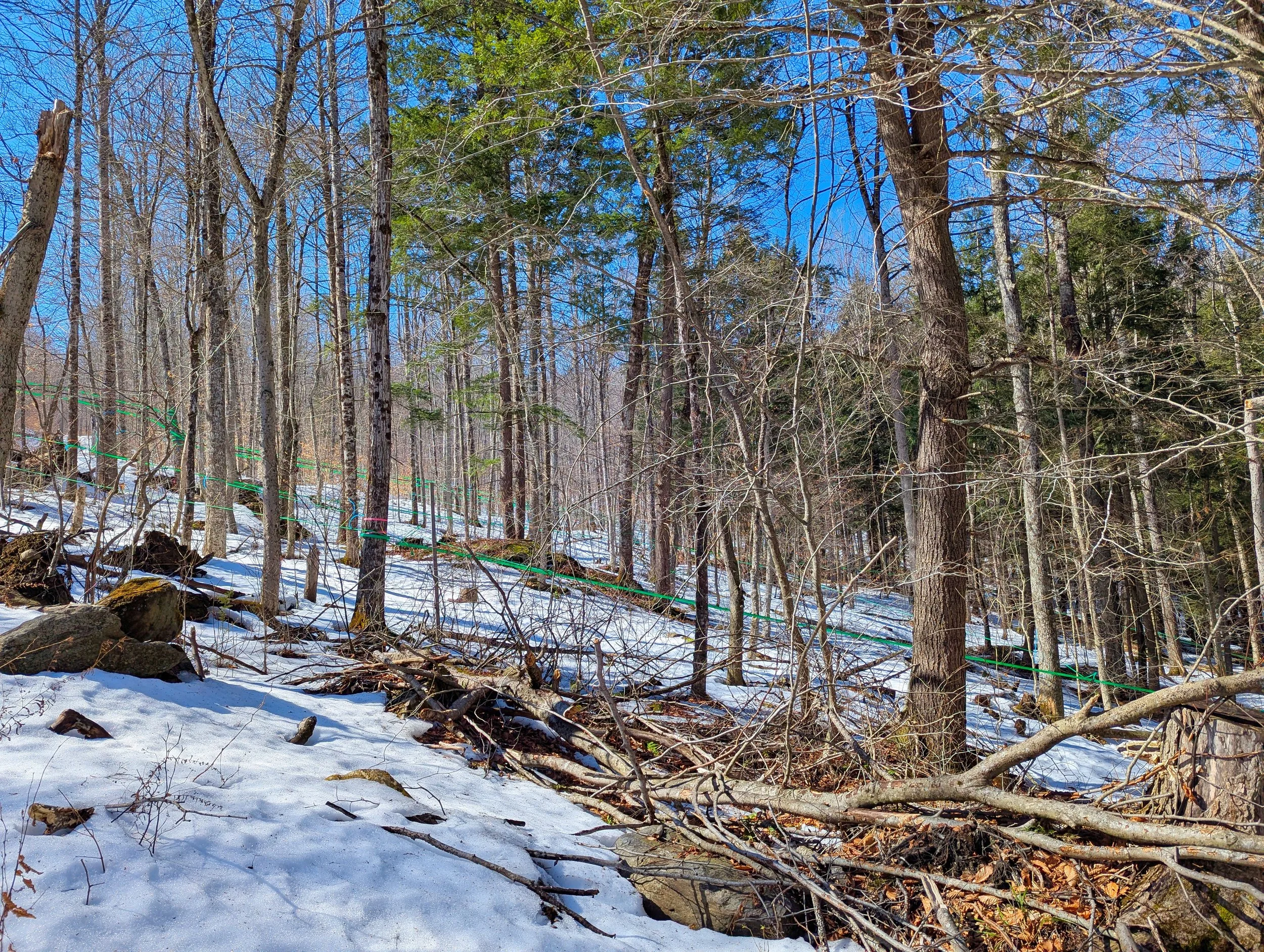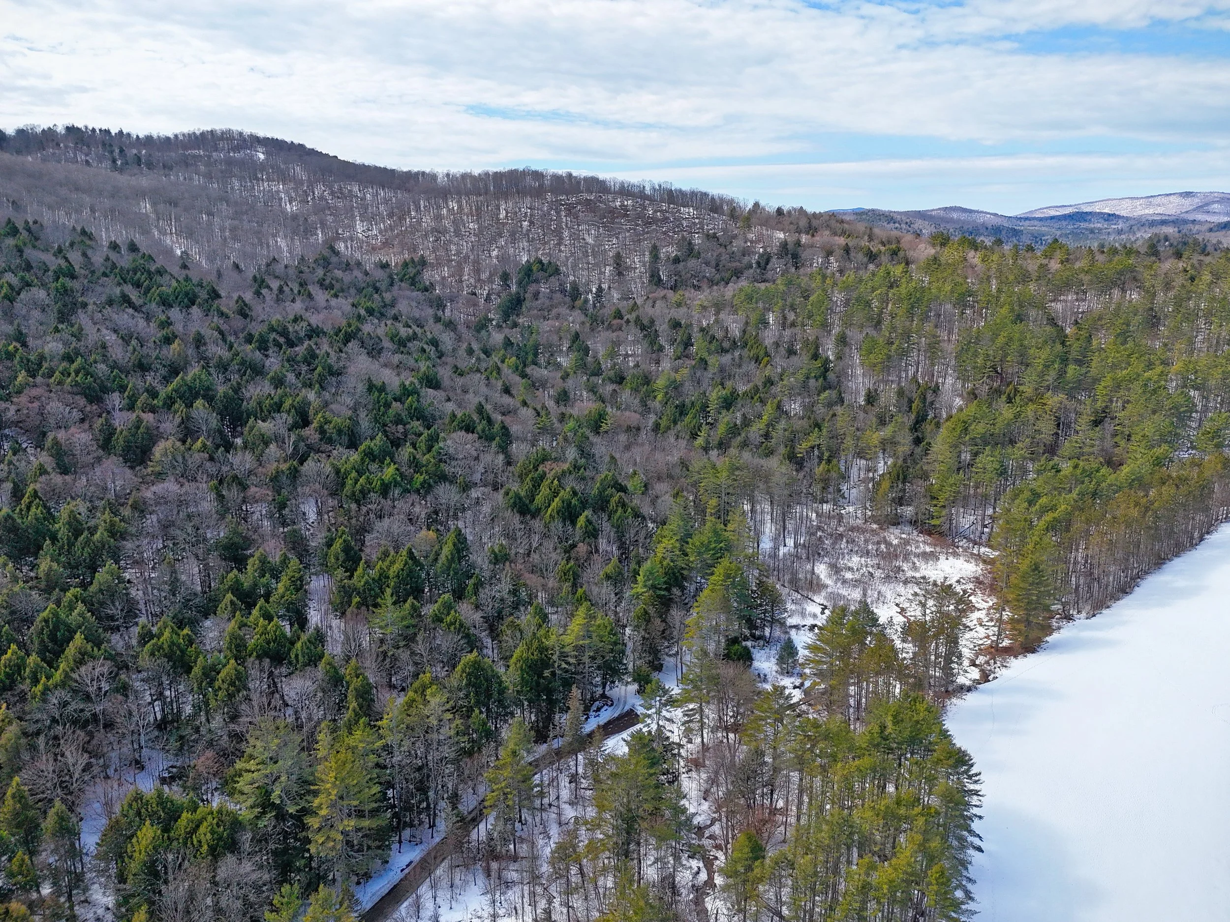 Large wooded parcel ascending two hillsides, with a creek-carved valley in the middle. The eastern side is easy to explore thanks to over 1,500 feet of dirt roads cut through the trees. The western side ascends to a summit with sparse tree cover and amazing scenic views. Beyond this the land continues up and over the ridge line then downhill once again to the Stockbridge town line.