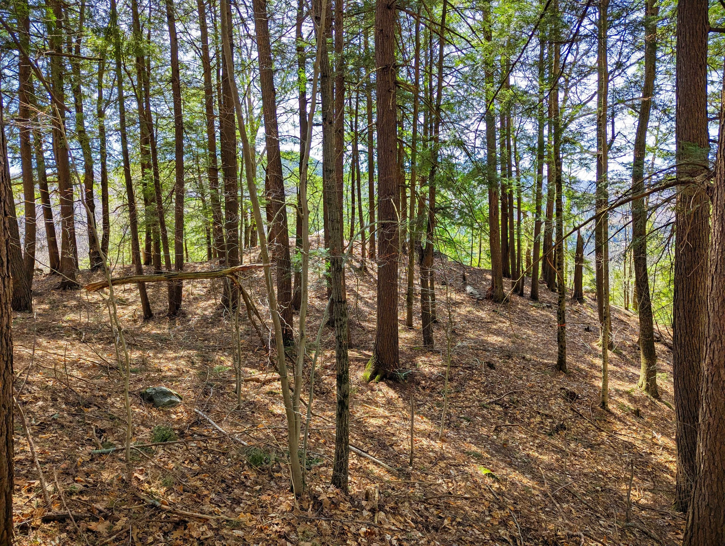 Terrain: Cliffside parcel has 0.7 acres deep rolling topography with low-density woods. Deeper than that is the sheer cliff face, which is not usable. The utility parcel is densely wooded, generally flat near the road then ascending a moderately steep hillside.