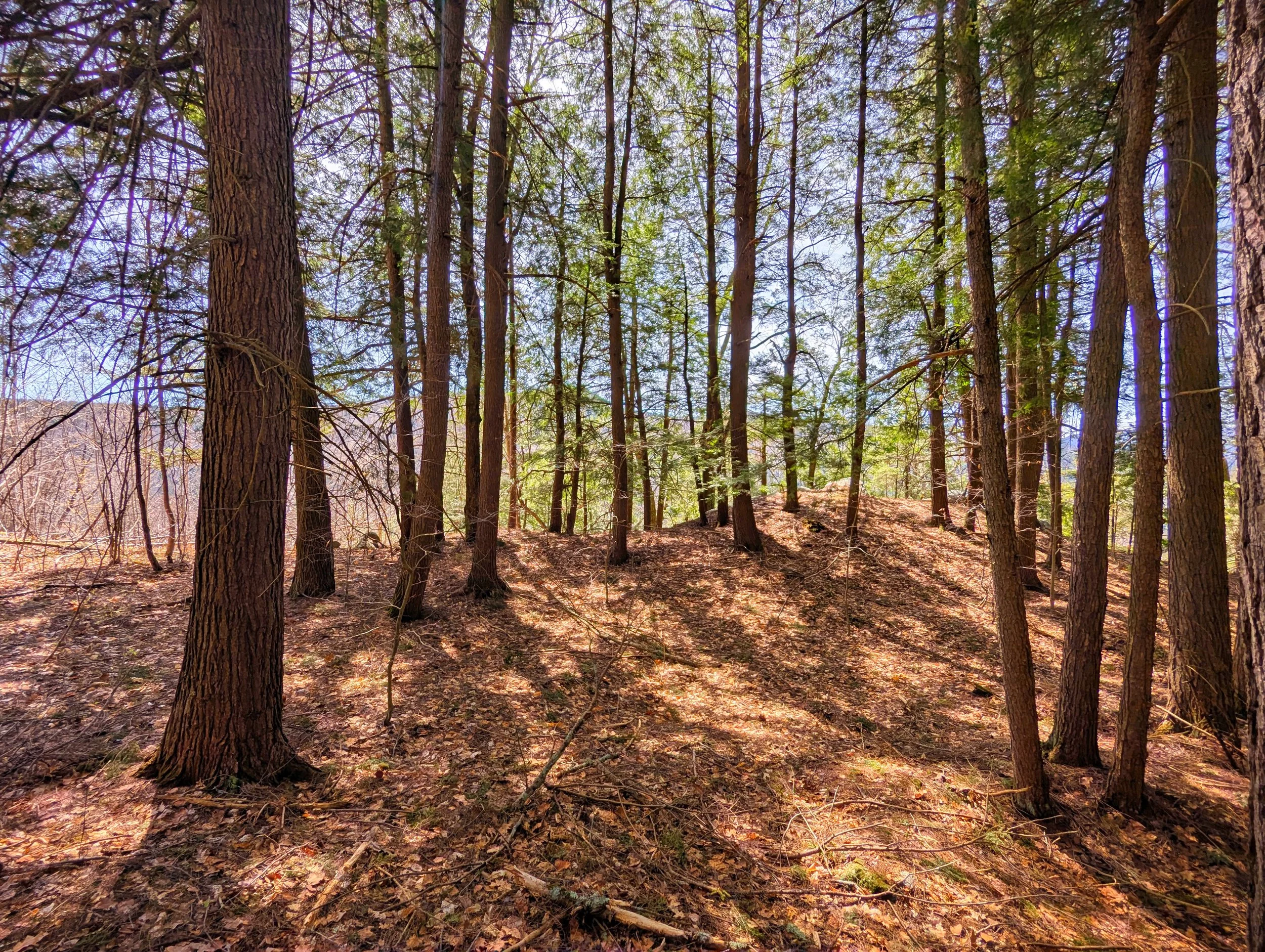 While the cliffside parcel is technically 3 acres, the actual building envelope is 0.7 acres before it reaches the cliff edge, and this opportunity is priced accordingly. Still this would be the most spectacular location to perch a house looking out over the river valley.