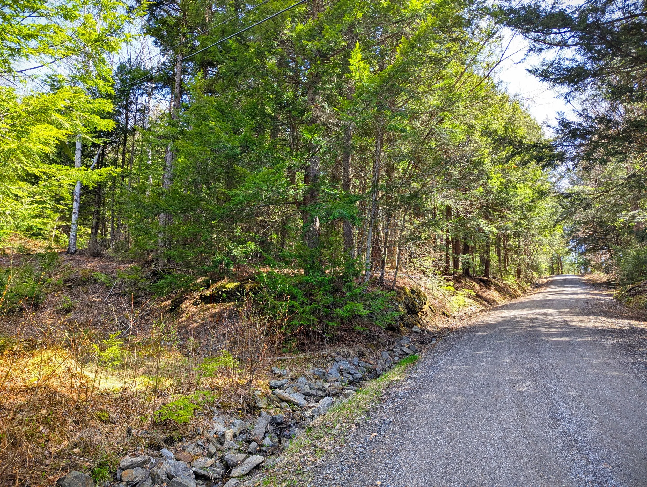 Access is via a private dirt road. Plowing and maintenance costs are divided among the owners of developed lots only, not vacant ones.